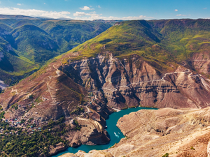 Сегодня мы покидаем гостеприимный Дагестан и перебираемся в не менее приветливую Чеченскую Республику. Но, прежде чем отправиться в Грозный, полюбуемся огромным рукотворным морем — Чиркейским водохранилищем и тонкой лентой реки Сулак на дне глубочайшего каньона.
