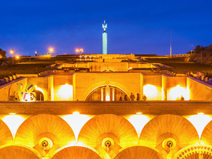 - После кругового обзора по городу нас ждет пешая прогулка по малому центру. Начнется она с Ереванского Каскада. Тут мы поднимемся до смотровой площадки, откуда открывается фантастический вид на розовый город, и конечно, если повезет, то перед нами откроется также величественный вид Библейского Арарата.