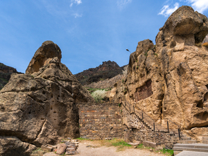 Языческий храм Солнца Гарни (1 в. н. э.) – Храм представляет собой необыкновенное по своей красоте зрелище, кажущееся порой нереальным. Построенный в греческом стиле, он занимает господствующий над глубоким ущельем треугольный мыс, огибаемый рекой Азат с двух сторон. Ущелье примечательно своими изумительными склонами, известными под названием «Симфония камней». Бонус от компании: Спуск к природному памятнику "Симфония Камней"