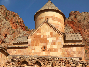 - Далее наш путь лежит по живописному ущелью, окаймленному терракотовыми скалами, к монастырю Нораванк*(13 в.). А по дороге к нему нас ждет посещение винного завода Арени и дегустация вин.