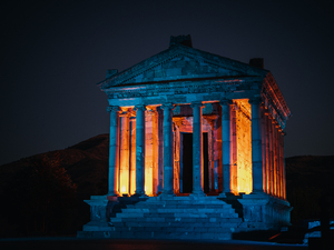 Языческий храм Солнца Гарни (1 в. н. э.) – Храм представляет собой необыкновенное по своей красоте зрелище, кажущееся порой нереальным. Построенный в греческом стиле, он занимает господствующий над глубоким ущельем треугольный мыс, огибаемый рекой Азат с двух сторон. Ущелье примечательно своими изумительными склонами, известными под названием «Симфония камней». Бонус от компании: Спуск к природному памятнику "Симфония Камней"