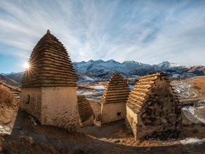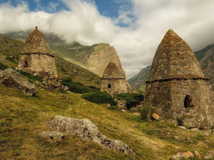 Далее переезд в Даргавскую котловину. "Осетинская Долина Фараонов" - Даргавский некрополь в народе сравнивают с египетской "Долиной Фараонов". По живописным горным склонам рассыпался целый "город" из, более чем, 90 склеповых сооружений оригинальной формы в виде белых каменных башенок-домиков с необычными крышами. Покой "Осетинской долины Фараонов" охраняют величественные Сторожевые башни XVI-XVII веков.