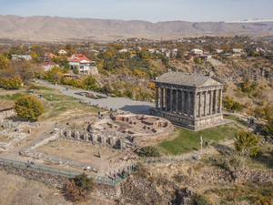 • Языческий храм Солнца Гарни (1 в. н. э.) – Храм представляет собой необыкновенное по своей красоте зрелище, кажущееся порой нереальным. Построенный в греческом стиле, он занимает господствующий над глубоким ущельем треугольный мыс, огибаемый рекой Азат с двух сторон. Ущелье примечательно своими изумительными склонами, известными под названием «Симфония камней». Бонус от компании: Спуск к природному памятнику "Симфония Камней"