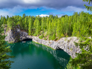 Экскурсия в Рускеальский горный парк - "Мраморный каньон". Парк создан в 2005 г. на базе уникального памятника индустриального наследия России Рускеальского мраморного карьера. Добыча мрамора была начата здесь в 1769 г. по указу Екатерины II для украшения известных сооружений Петербурга: Мраморного дворца, Исаакиевского собора, Мариинского дворца и др. Сочетание природы Карелии и деятельности человека придали этим карьерам удивительно живописный вид, который привлекает любителей путешествий не только из Карелии.
