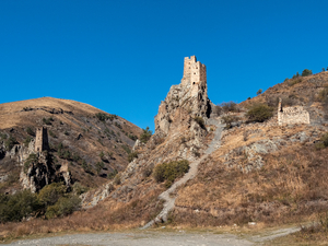 - При подъеме выше к селению Ханаз, предстоит легкий трекинг маршрут до уникального средневекового замка, который называют «Фрегат». Подобной архитектурной постройки нет на всем Северном Кавказе. Недалеко, на скалистом хребте развалины крепости братьев Седановых поражают воображение. Можно только предполагать, каких трудов стоило построить на этом месте неприступную крепость, которую так никому и не удалось взять за всю историю ее существования.