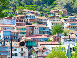 - Пеший спуск к Серным баням (квартал Абанотубани) – вне всякого сомнения, один из самых колоритных районов Старого города и потому чаще всего встречается на открытках. Улочки Старого Тбилиси плавно переносят на несколько веков в прошлое. Почти все здания Старого города – исторические или культурные памятники, здесь круглосуточно кипит жизнь, гуляют туристы, встречаются влюбленные у Башни с часами, художники выставляют свои картины, ремесленники предлагают многочисленные сувениры. Извилистые мощеные улочки с эклектичной архитектурой и уникальными деревянными домами с резными балконами: улица Шардени – центр развлечений и светской жизни, Сиони с историческим собором, улица Шавтели с «Пьяной башней» и театром марионеток Резо Габриадзе.