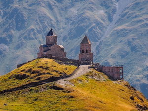 - Троицкая церковь в Гергети, построенная в XIV веке, расположена на холме у подножия горы Казбек и хранит тайны богатейшего христианского наследия Грузии. С высоты 2170 метров над уровнем моря, как магнит она притягивает своей красотой. Отсюда открывается удивительный вид на Дарьяльское ущелье и величественный Казбек! Подъем к церкви на внедорожниках (вкл. в стоимость).