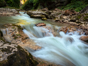 Горная река за миллионы лет прорезала в скале узкий коридор глубиной до 40 м.