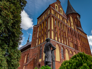 11:45 Посадка от гостиницы "Калининград" (Ленинский пр., 81)Осмотр основных достопримечательностей и памятных мест города: старинные городские ворота; главный в области русский православный Храм Христа Спасителя на площади Победы; важные общественные здания Кёнигсберга: вокзалы, земельно-ведомственный суд, дирекция почт, драматический театр; зоопарк; церковь памяти королевы Луизы, ставшая областным детским кукольным театром, район вилл «Амалиенау»; прогулка на островной части города от Рыбной деревни к древнему Кафедральному собору, у стен которого находится могила великого сына этого города-философа Иммануила Канта; главная улица советского Калининграда - Ленинский проспект с преобразившимися до неузнаваемости хрущёвками и монументом «Россия-мать»; панорама реки с территорией музея мирового океана и зданием биржи, открывающаяся с высокого эстакадного моста. А также гастрономические традиции этой территории: историческая пивоварня Понарт с дегустацией пива и музей марципана - популярной во многих странах сладости, которая имела в этом городе свою рецептуру. Продолжительность экскурсии 5-6 часов.