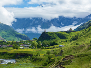 Увидим два сказочных поселения в горах Кавказа, которые приобрели славу известных горнолыжных курортов Грузии - Гудаури, расположенный на высоте 2195 м и Степацминда.