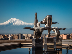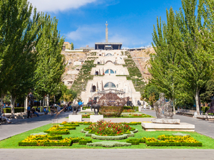 - После кругового обзора по городу нас ждет пешая прогулка по малому центру. Начнется она с Ереванского Каскада. Тут мы поднимемся до смотровой площадки, откуда открывается фантастический вид на розовый город, и конечно, если повезет, то перед нами откроется также величественный вид Библейского Арарата.