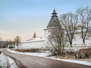 Свято-Пафнутьев монастырь, расположен рядом с Боровском. Величественный мужской монастырь - крепость 15 века с узкими окошками-бойницами, образец оборонного зодчества средневековой Руси. Сегодня эта обитель объединила в себе целый комплекс церковных строений различных стилей и времен.