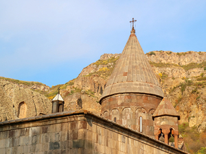 Пещерный монастырь Гегард (12 - 13 вв.), в переводе означающей «святое копье» в честь хранившегося в нем долгое время того самого копья, которым пронзили распятого Христа. Копье сейчас находится в музее Св. Эчмиадзина. Храм находится высоко в горах в ущелье реки Гохт. Это шедевр армянского средневекового зодчества. Он представляет собой комплекс, состоящий из главной церкви, двух пещерных церквей и усыпальницы. В первом пещерном храме из скалы бьет холодный родник. Считается, что его святая вода исцеляет от болезней и дает красоту. Монастырь Гегард занесен в списки Всемирного наследия ЮНЕСКО (лист 2000).